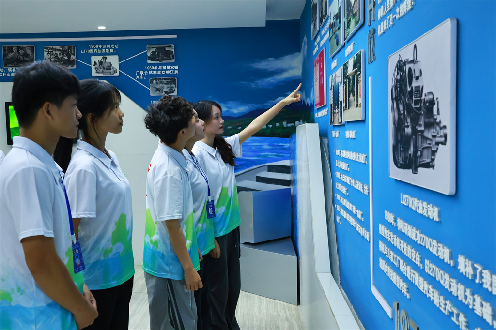 从木炭发动机到现代化汽油机,从抗战烽火到和平建设,一段跨越时空的旅程让青马学子深刻理解了什么是中国精神、中国力量。10月19日,学校2025级青马班学员走进五菱柳机企业展厅和柳州军事博物馆,开展了一场别开生面的实践教学活动。在这场穿越工业发展与革命历史的旅程中,学员们见证了中国工业从无到有的奋斗历程,感受到了中国人民不屈不挠的民族精神。