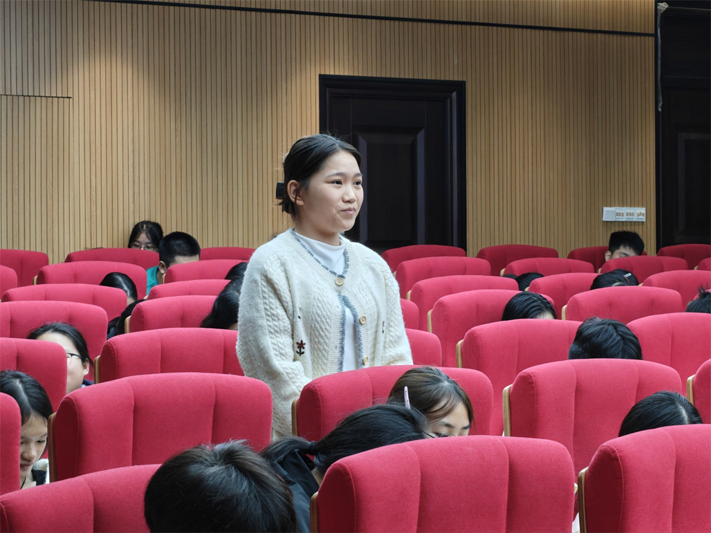 宣讲环节结束后,活动进入互动交流阶段。在场同学们踊跃举手,围绕宣讲内容提出疑问,与两位讲师展开思想碰撞,在答疑解惑中进一步深化了对教育赋能、文化创新等主题的理解,现场氛围热烈而活跃。