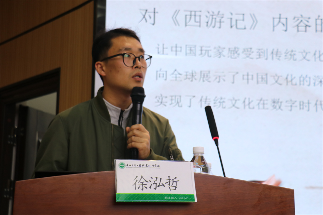 随后,来自汽车与信息工程学院徐泓哲老师带来《文化自信——论激发文化创新动能》的主题分享。他以热门作品《黑神话・悟空》中的文化符号为切入点,带领同学们从“文化现象”深入思考“文化自觉”,拆解文化创新的深层逻辑,厘清了文化传承与商业成功的平衡之道,并探讨了中华优秀传统文化活态传承与文化输出的可持续路径。生动的案例分析与深刻的理论解读,让同学们对文化自信的内涵与实践方式有了全面认知,收获颇丰。
